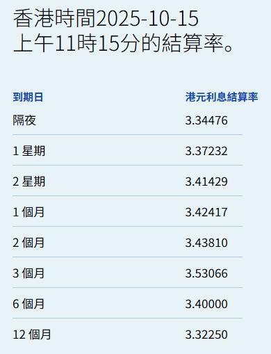 智通财经APP获悉上市公司配资,10月15日,港元拆息全线向下,而与楼按相关的一个月拆息报3.42417%,跌8.006基点;反映银行资金成本的三个月拆息报3.53066%,跌4.16基点。